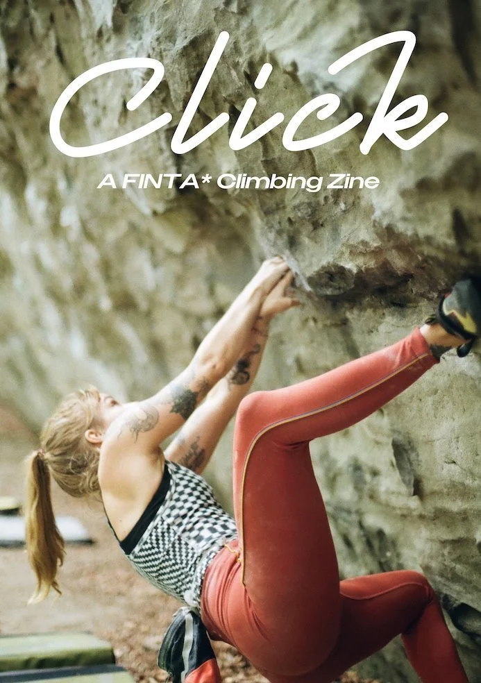 Click is a self-made Zine focussing on FINTA* people in the climbing world. The idea grew out of the desire to see and read more about FINTA* people and their climbing experience.